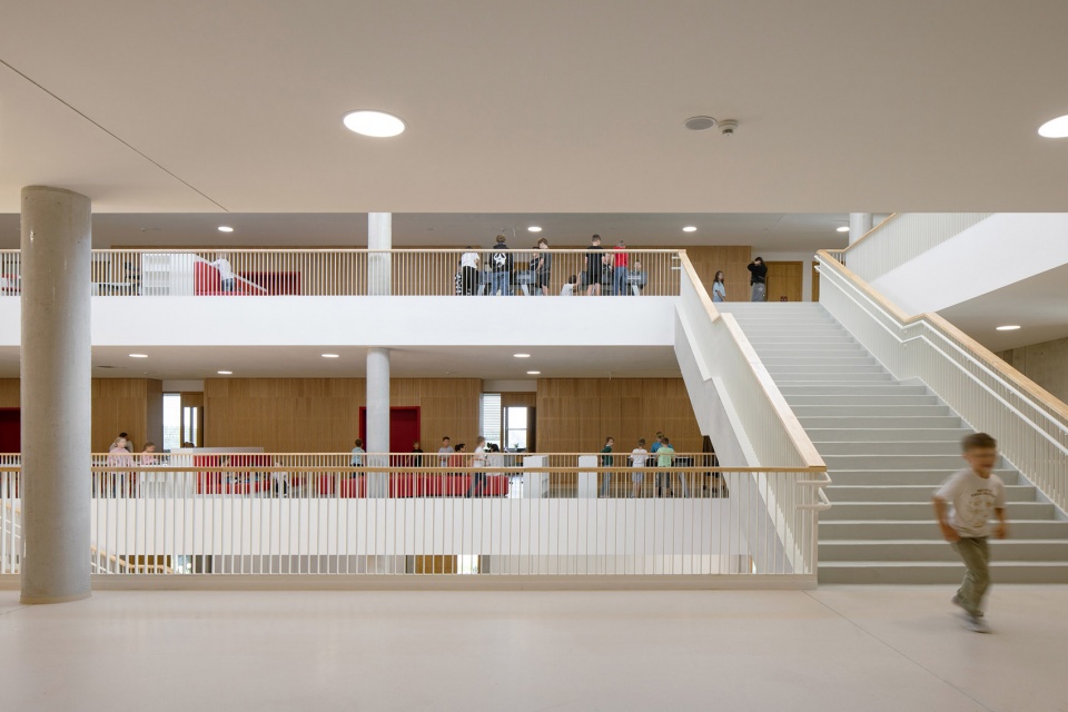 The design for the new school in Chýně is based on a contemporary, modern approach to education. The school’s shared spaces — both interior and exterior — play an equally important role in the learning process as traditional classrooms. Informal learning can take place in alcoves along corridors, while small nooks provide opportunities for quiet conversation. Study rooms offer various seating arrangements, supporting different modes of concentration. The roof is designed for both play and learning. Thus, the school offers a rich internal world in which both young pupils and teenage students can find their own place.