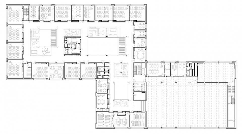 建筑可以在两种主要模式下运行。在上午教学制度下,整个设施完全开放并投入使用。下午的精简运营模式则仅允许公众进入建筑的特定部分——俱乐部空间、图书馆、体育馆以及多功能厅,该多功能厅也可与食堂区域一起举办偶尔的文化活动。