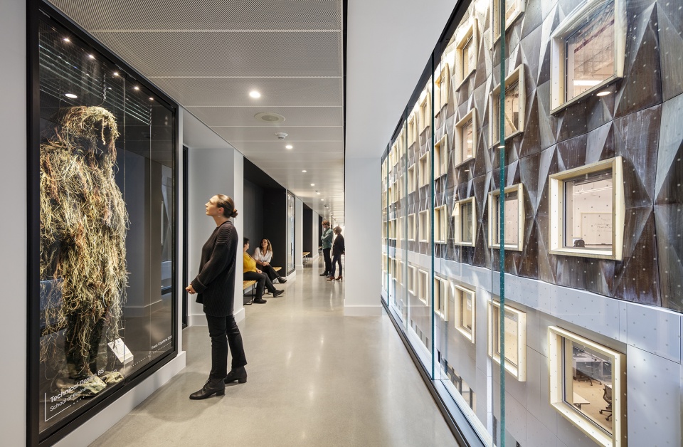 ▼带展示橱窗景观的教室层,Classroom level with view of display vitrine