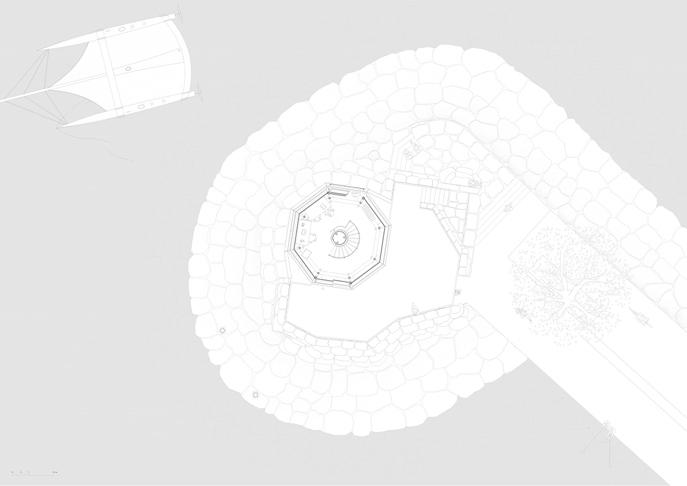 The site, silent and delicate, presents a unique opportunity to create a landscape, to accentuate this point of extension into the lake with a strong and well-placed development that serves as a support for the lighthouse structure.