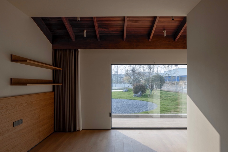 Window design emerged as a core strategy for transcending traditional rural typologies and achieving a distinctly contemporary sensibility. We drew inspiration from Juhani Pallasmaa’s The Eyes of the Skin: Architecture and the Senses: “When we glimpse a landscape through a window incidentally, or catch the texture of a wall in our peripheral vision, our connection to the environment becomes the most authentic and intimate.” This insight led us to abandon the pursuit of a monumental, frontal composition in favor of fragmented “glimpses” that shape perception.Windows are freely arranged across façades facing the open fields in various directions: wedge-shaped apertures carve dynamic angles of light and shadow; horizontal ribbon windows extend the depth of the view; linear clerestory openings draw in skylight; and small square or decorative windows weave subtle visual rhythms at close range. As mediators, these openings bring in fragments of light and landscape, transforming the building into a vessel for sensory narratives—its character not defined by a grand, singular statement, but through an ongoing dialogue between windows and walls, turning fleeting glances into a continuous, unfolding experience.