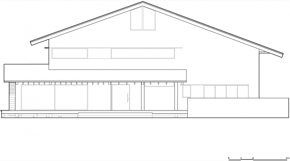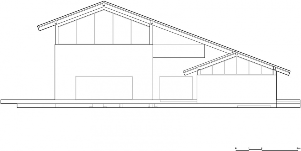 屋顶与墙体之间的关系被有意识地疏离——或是借助线性高窗切割出悬浮的视觉暗示,或是通过玻璃山墙的透明性模糊界域,又或是在屋脊处开凿洞口,以光与空的介入强化建筑与大地的分离感。最终,屋顶仿佛挣脱了实体的束缚,漂浮于田野之上,以舒展的姿态回应开阔的自然环境。变造过的屋顶间相互对话,在视觉上形成连续的整体,其起伏轮廓拟合了风拂过丘陵的姿态—如同我们在上文所述卡洛·莫里诺的黑湖小屋所展现的气质。它与田园节律相呼应,营造出自然延续的地景韵律与亲人的尺度感。
