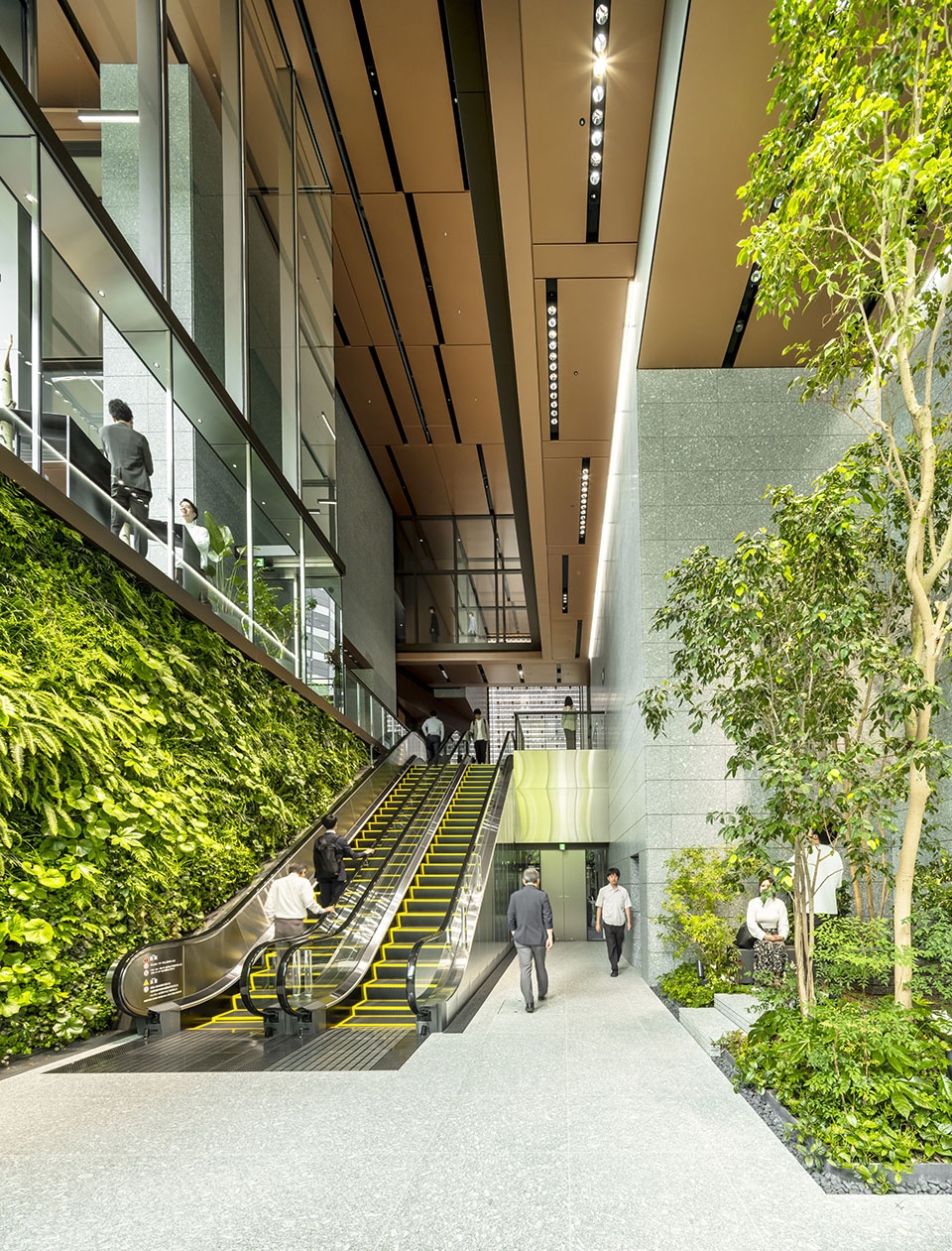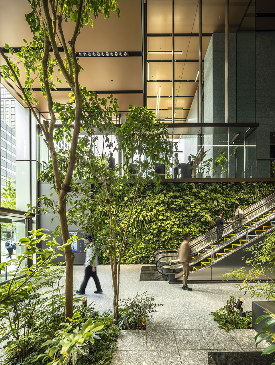 The lower floors feature terraces overlooking Midosuji Boulevard, where parades and festive events are held, creating a new idea for public spaces in high-density cities: a multi-layered plaza that connects with the urban fabric.