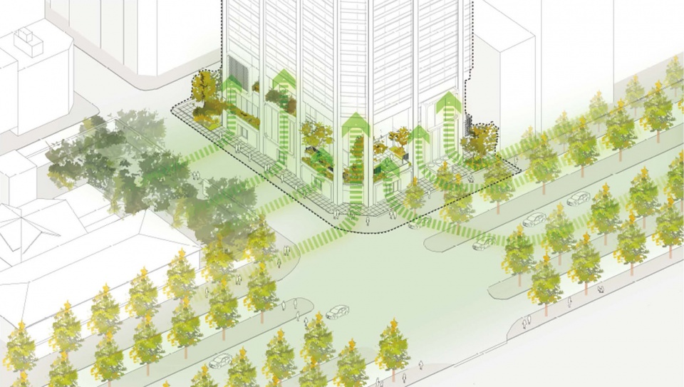在步行友好的主干道上建造以人为本的大楼 A People-Centric Building on a Walkable Main Street