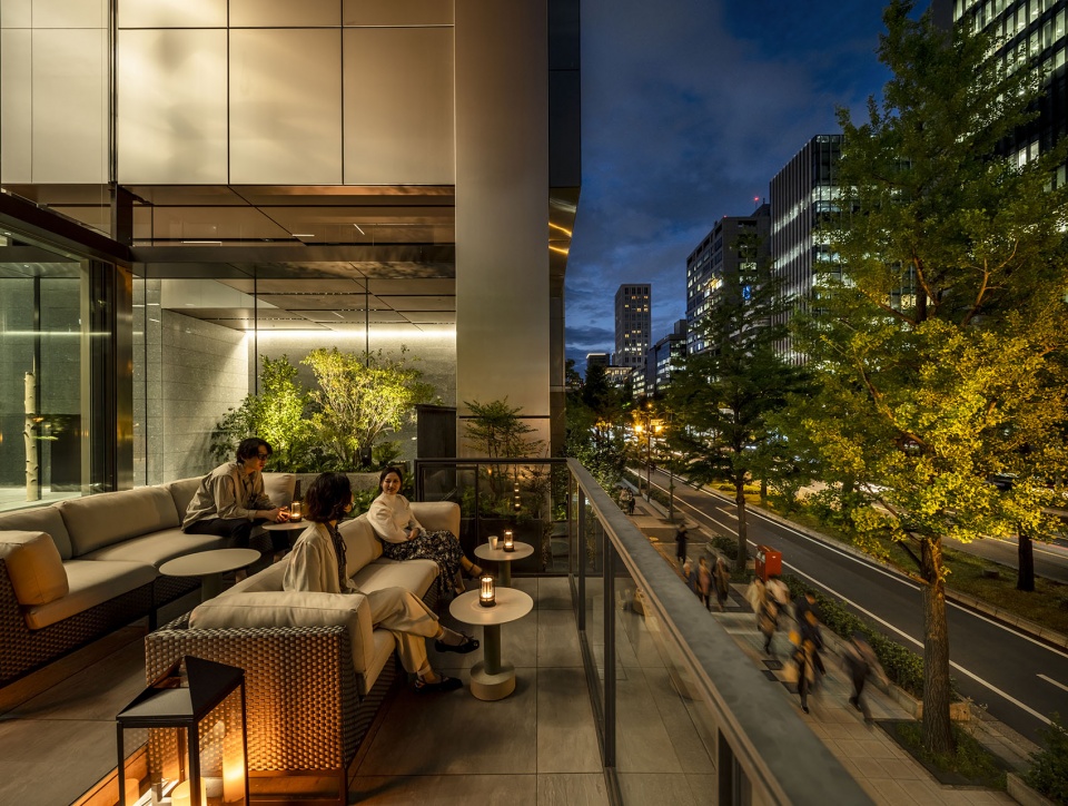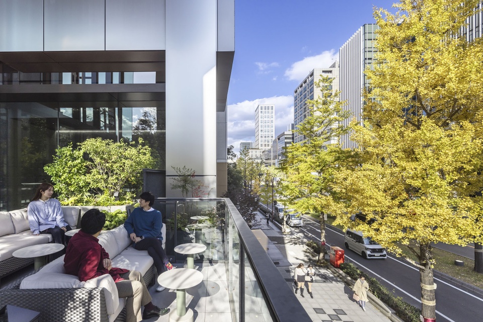 低楼层部分设置了可俯瞰御堂筋举办游行等庆典活动的露台,在高密度城市中创造了连接城市的立体广场这一全新的广场概念。