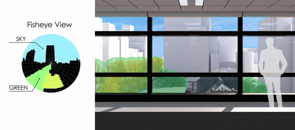 ▼天空与绿地的视野比例,Sky & green view ratio