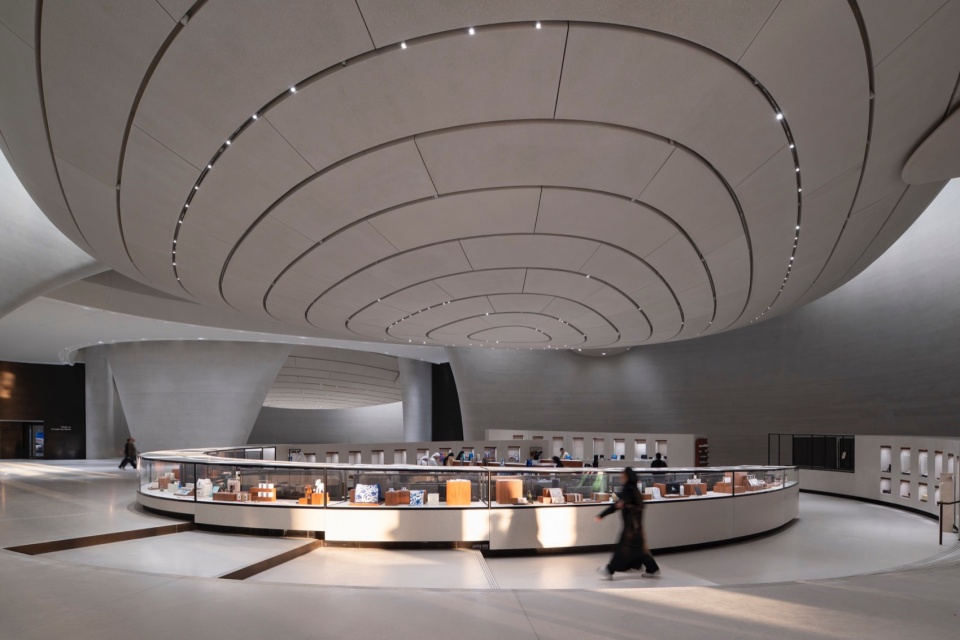 每个舱状展厅围绕特定主题策展,而连接节点空间提供上下文信息,将展厅之间关联起来。访客可自由选择参观路线,并通过雕塑般的螺旋楼梯或电梯到达上层。地面层靠近入口的区域还设有另外两个常设展厅、一个临展空间、一家高级餐厅与一间咖啡厅。