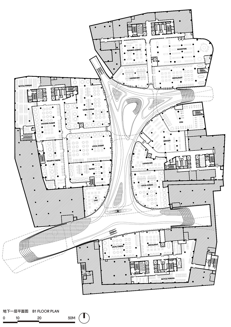 ▼地下一层平面图,B1 floor plan