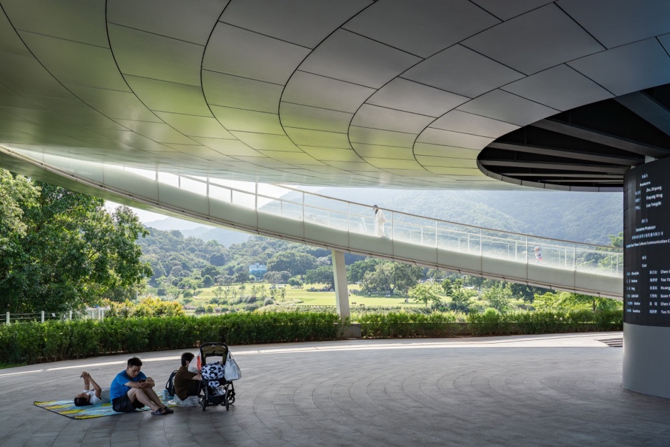 The project is located at the Enshang Wetland Park atop Wutong Mountain in Yantian District. Here, on one side lies the summit landscape of the Enshang Wetland on Wutong Mountain, and on the other, the endless expanse of the Yantian Port sea surface with its “fairy isles overseas” and the seemingly infinite stacks of containers in the port. The wonders of nature and human artifice are presented here almost simultaneously.