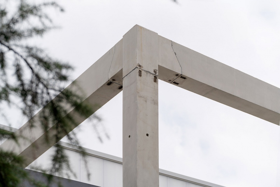 项目秉持“结构-空间-形式”一体化设计理念,将装配式混凝土框架系统同时作为结构承载体系、空间划分网格与立面形态语言,实现三者的高度统一。作为创新性装配式结构的首次试验性建筑,设计在技术创新与成本控制之间寻求平衡,采用6m×4.8m×4.2m的标准化单元模块,通过水平阵列与垂直堆叠完成整体形态构建。