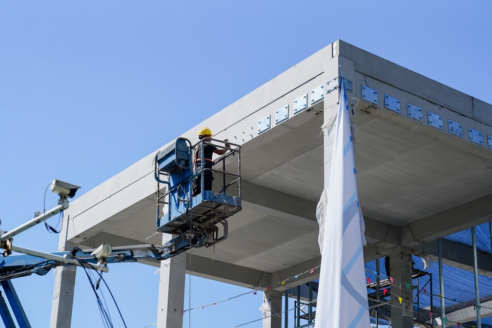 项目主体结构全部采用预制混凝土构件,包括梁、柱、楼板及墙体等核心构件,现场施工仅需完成模块化拼装作业,彻底取消湿作业环节及配套机械设备,实现“全预制、全拼装”的建造模式。该模式达成100%装配率的行业高标准,在工期缩短与成本控制方面实现双重优化。