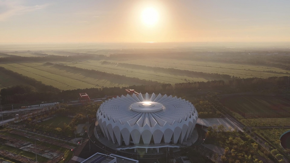 位于崇明国家级体育训练基地北侧的上海自行车馆,是上海首座符合国际顶级赛事标准的室内场地自行车馆。建筑的初始任务十分明确:填补上海在专业场地自行车馆上的空白,同时成为国家队南方训练基地、国际自盟亚洲世培中心的落脚点,并承载未来世界锦标赛等高等级赛事的可能性。项目先后获得2025年度中国勘察设计协会全国优秀工程勘察设计一等奖、2025年度上海市优秀工程勘察设计一等奖。