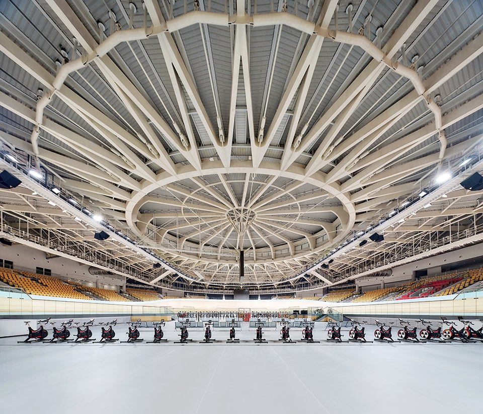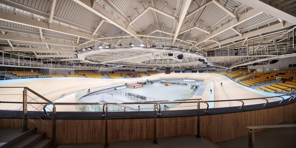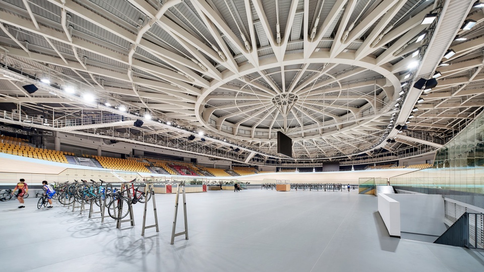 设计团队通过将“视点”从单一的起点线扩展为起点线、终点线、全直道三段重点视界,重新推导最佳座席标高,并优化过渡看台的升起节奏,使整体视线达成100%合格率。在弯道处,观众不但可完整观看冲刺,也能保持空间连贯性与结构整洁度。这一策略成为国内自行车馆设计中的一次新的视线建模实践。