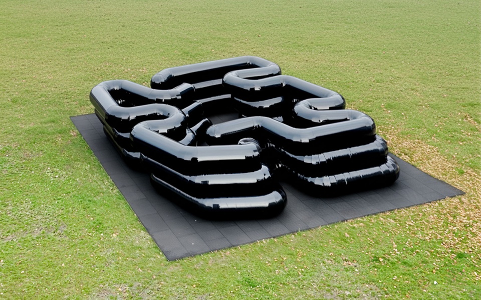 In a Europe navigating fragmentation, digital isolation, fear, and conflict, SONIC MAZE emerged from the collaboration between French architect mesure studio and German designer ultimo intimo. Their 12 × 12-meter structure is an original, custom design composed of two independent inflated bodies. At Dutch Design Week 2025, it rose to its full shape within minutes on the festival’s central plaza. Selected as Grand Project by the Dutch Design Foundation, the installation was conceived as an introductory threshold welcoming the 350,000 visitors expected over the nine days of the fair. A radical presence that resists categorization, SONIC MAZE challenges the boundaries between design, art, music, and architecture – inviting visitors to collectively imagine the future and to reconsider the limits we place upon ourselves.