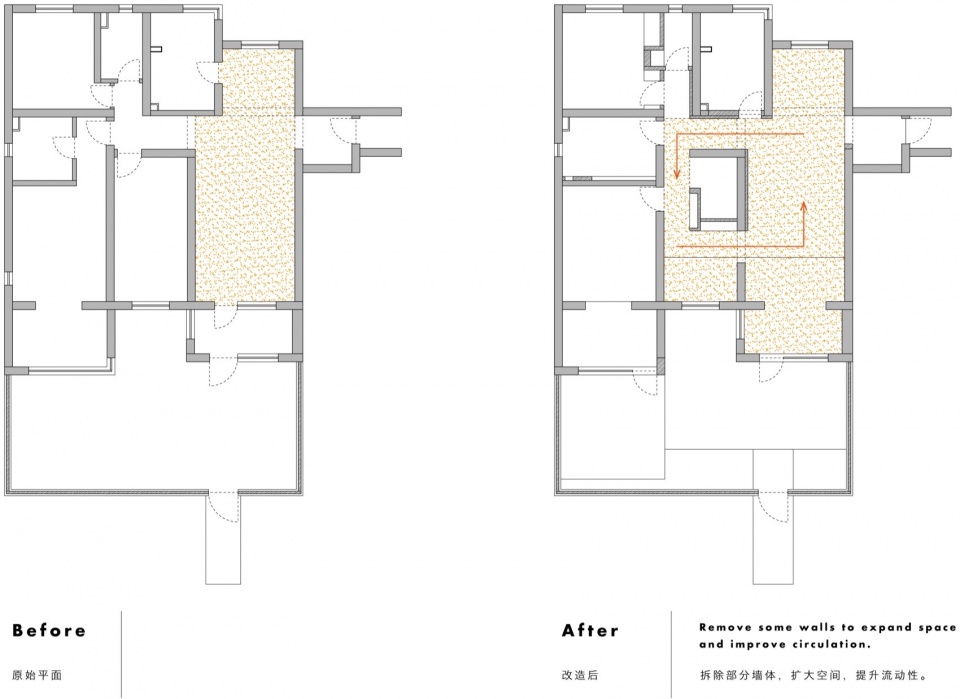 ▼拆除墙体以扩大空间和提升流动性