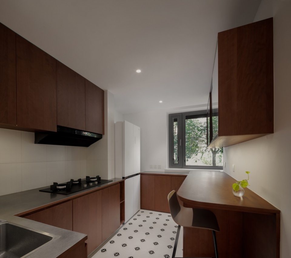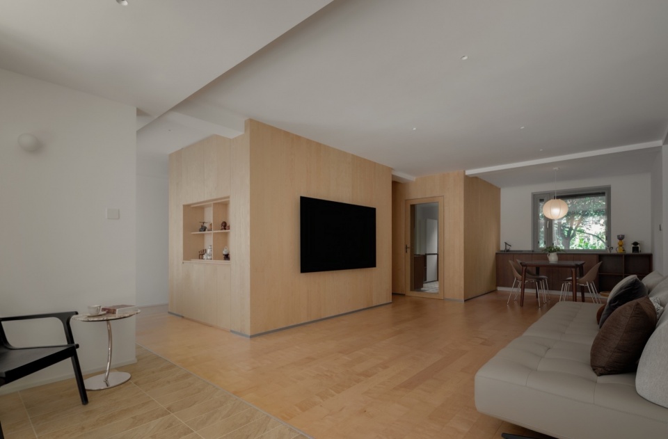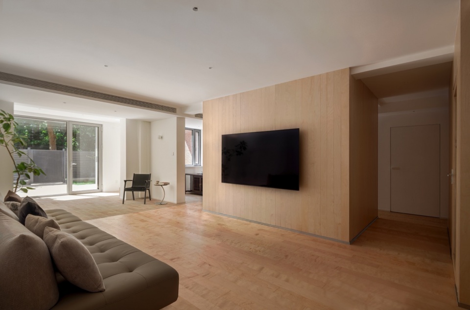 This project is a renovation of a 153-square-meter apartment located in the suburbs of Beijing. The home sits on the ground floor and is inhabited by a couple and their two cats, with an additional 60-square-meter garden outside.
