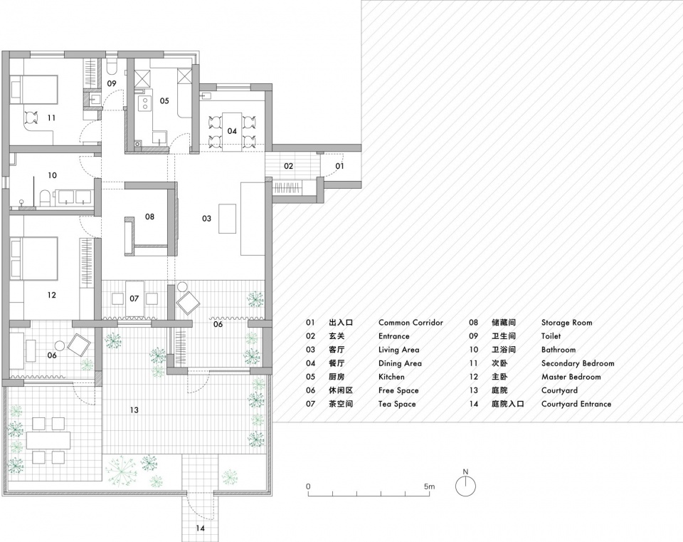 The infiltration and integration of the inside and outside can be seen from the floor plan