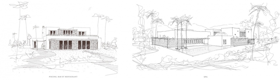 项目概念源自场地的本质及其物理特征——起伏的沙丘、本地植被、大海的存在、卡博内格罗的剪影——以及光线回响、微风拂动或候鸟飞行所唤起的情绪。当代的优雅通过摩洛哥工艺传统被注入,以极简的当地材料调色——石材、木材、灰泥——与施工技艺呈现,在精致的体量构成中以克制的姿态成形。