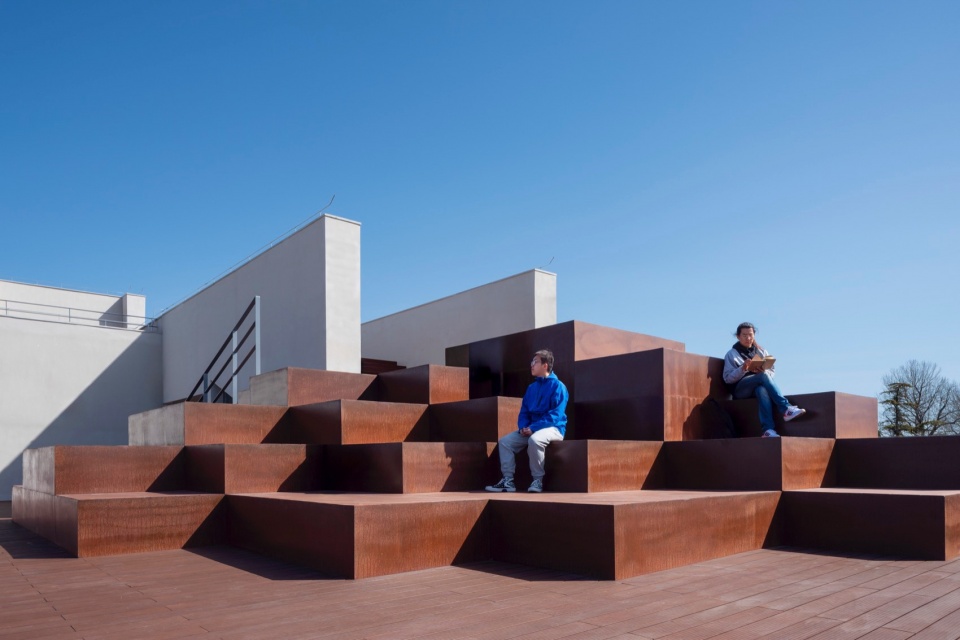 ▼四层至五层屋顶平台连接台阶,rooftop terrace