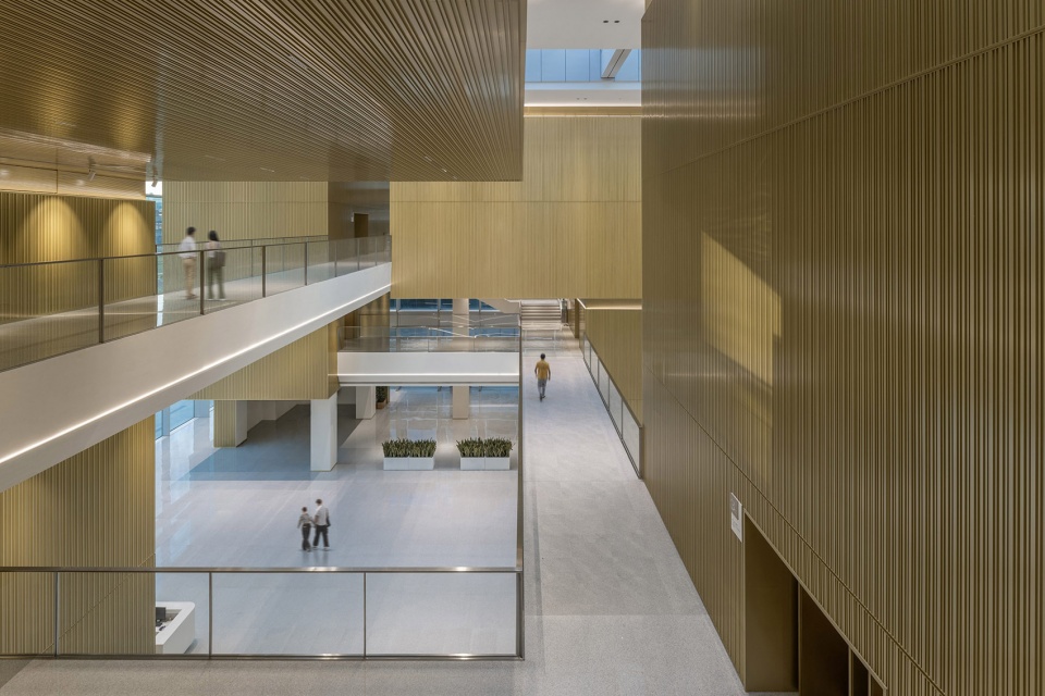 The CHJ Plaza, located at the heart of CITIC Binhai New Town in the Haojiang District of Shantou, adds a major cultural and urban development impulse to the district’s growth corridor. Designed by architects von Gerkan, Marg and Partners (gmp), the new headquarters complex for the jewelry manufacturer combines public and private uses in a mixed-use ensemble comprising an office tower, museum, and residential tower. Open ground-floor zones and a publicly accessible foyer weave the development into the surrounding neighborhood and connect it directly to the waterfront cultural axis.