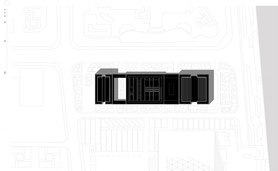 Within this context, CHJ Plaza plays a pivotal role. Together with the adjacent Chaoshan Exhibition Center to the east — showcasing key elements of the region’s material and immaterial cultural heritage — it forms the neighborhood’s new cultural center. The museum creates a public venue that opens the client’s collection of historic Chinese jewelry and gold-thread artifacts to a wider audience. At the same time, the overall complex brings together work, culture, and living in a clearly organized architectural composition.