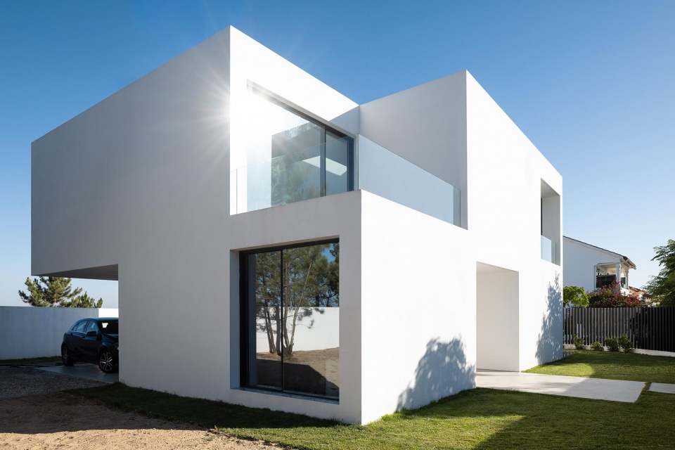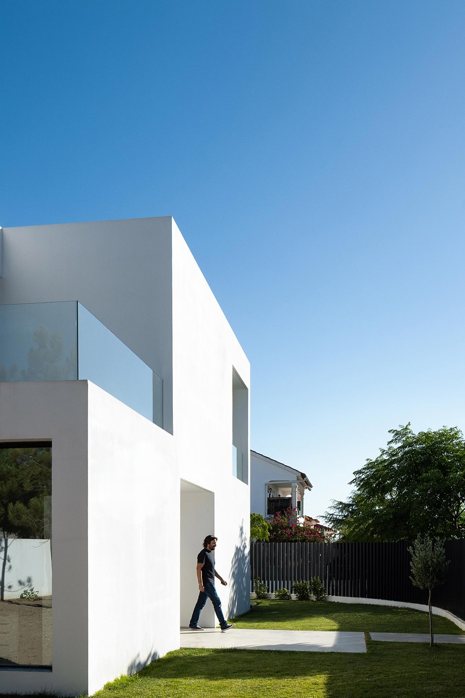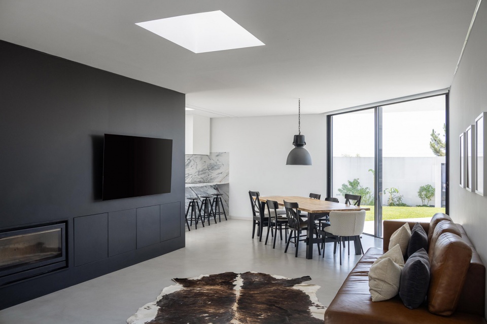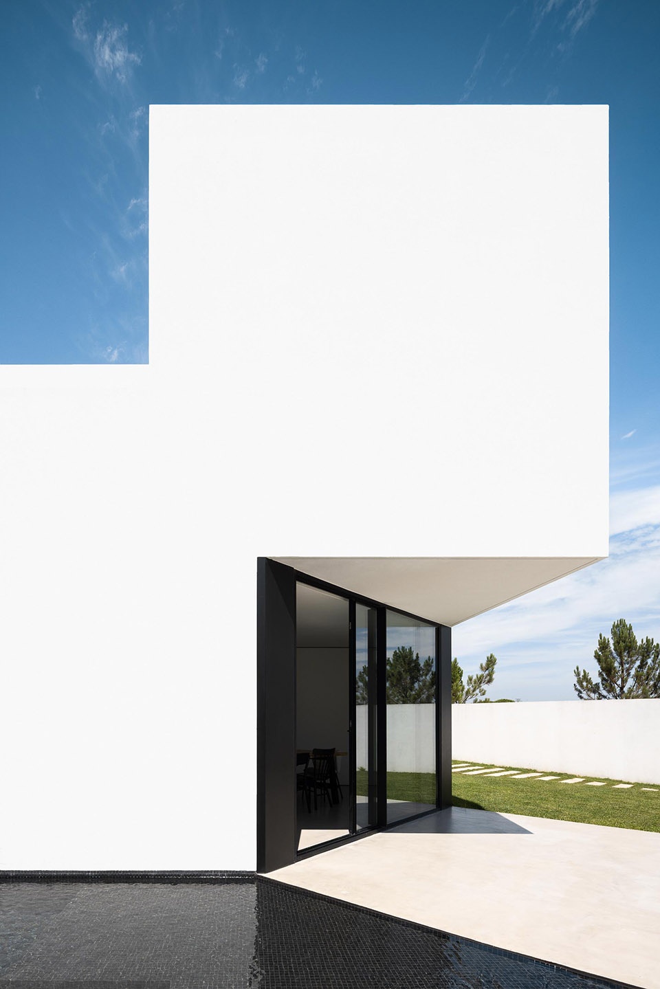 该项目位于托雷什诺瓦什(Torres Novas)的 Meia-Via 地区,占地600平方米。这是一个不断扩张的住宅区域,周边由街道与未开发地块构成,邻近的独栋住宅在建筑风格上十分多样。正是这种异质性与缺乏明确参照的现状,成为本案的出发点——通过简洁、克制且具有明确几何界定的当代建筑语言,使住宅在环境中脱颖而出。