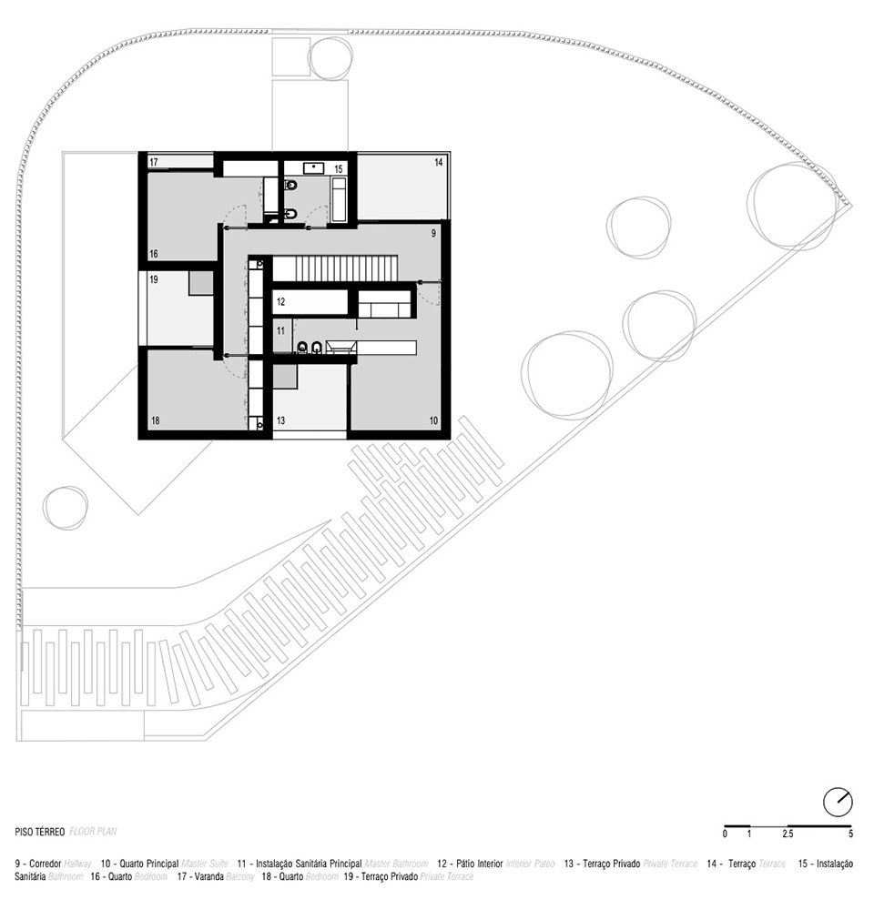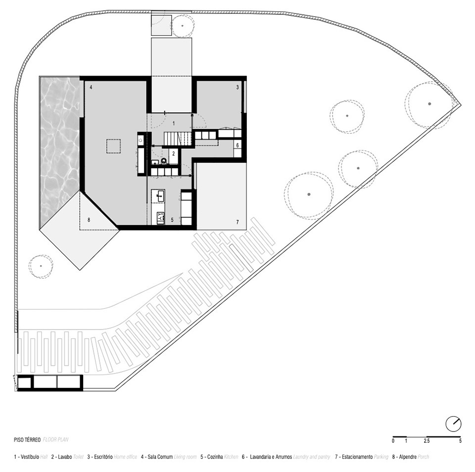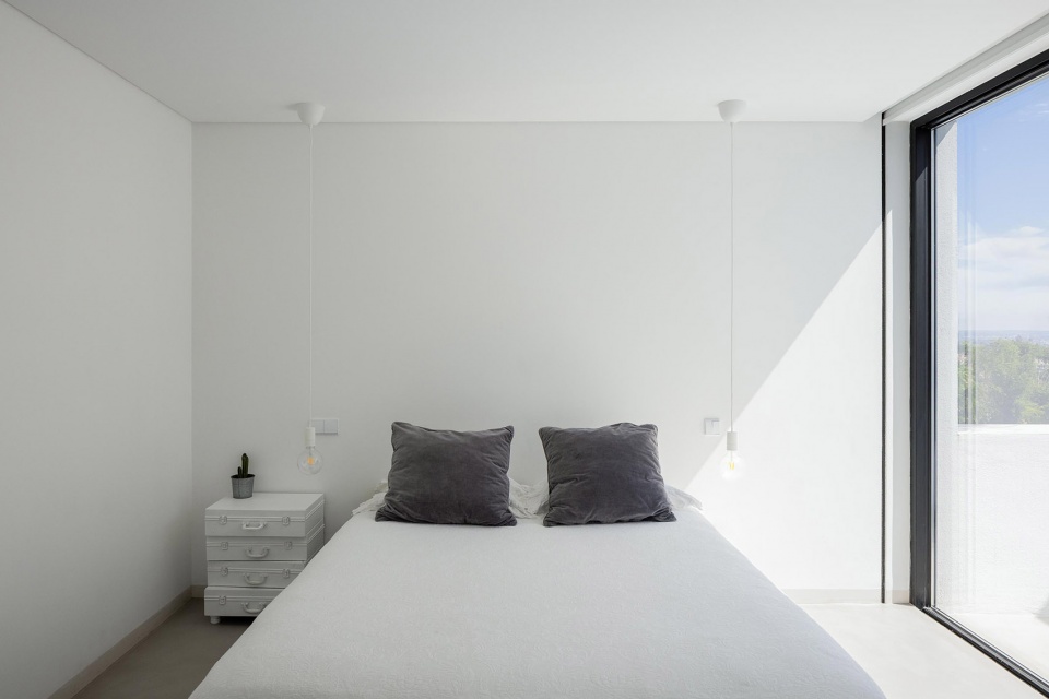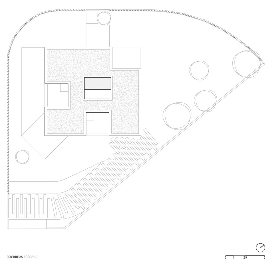 该项目位于托雷什诺瓦什(Torres Novas)的 Meia-Via 地区,占地600平方米。这是一个不断扩张的住宅区域,周边由街道与未开发地块构成,邻近的独栋住宅在建筑风格上十分多样。正是这种异质性与缺乏明确参照的现状,成为本案的出发点——通过简洁、克制且具有明确几何界定的当代建筑语言,使住宅在环境中脱颖而出。