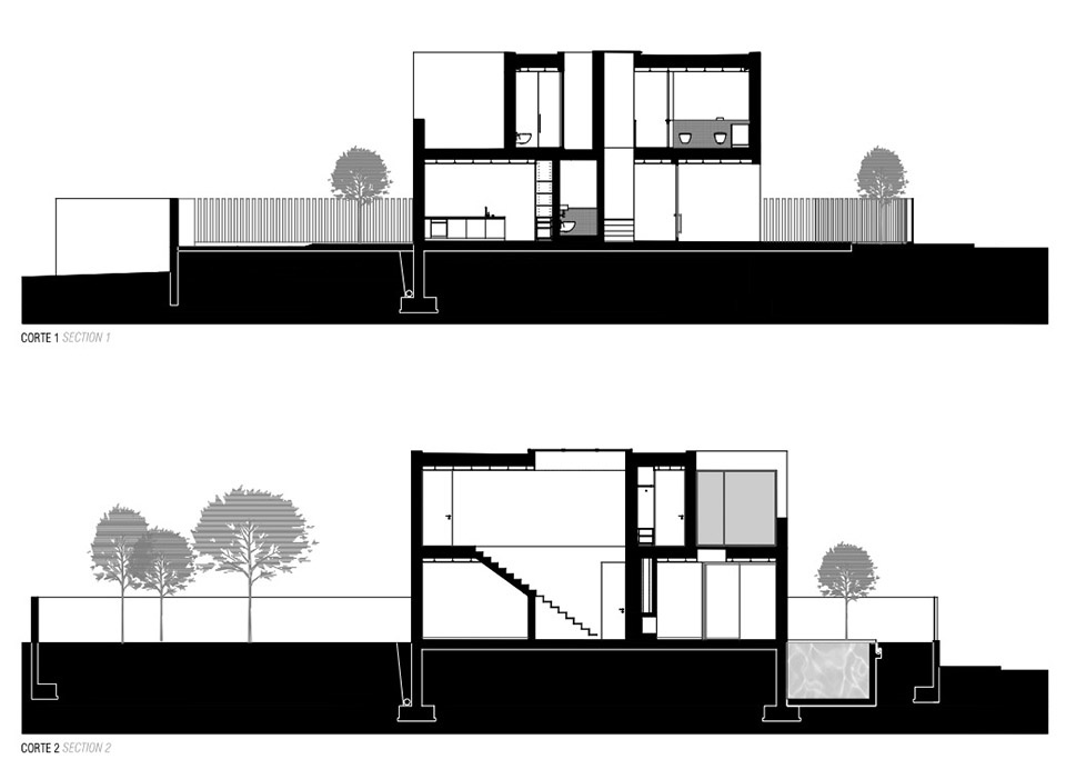 The project is developed on a 600 m² urban plot located in Meia-Via, Torres Novas. Situated in an expanding residential area, the site is defined by surrounding streets and undeveloped lots, yet framed by single-family houses of diverse architectural styles. This heterogeneity and lack of strong references became the starting point for a proposal that distinguishes itself through a contemporary design language, based on simple and sober volumetrics with clear geometric definition.