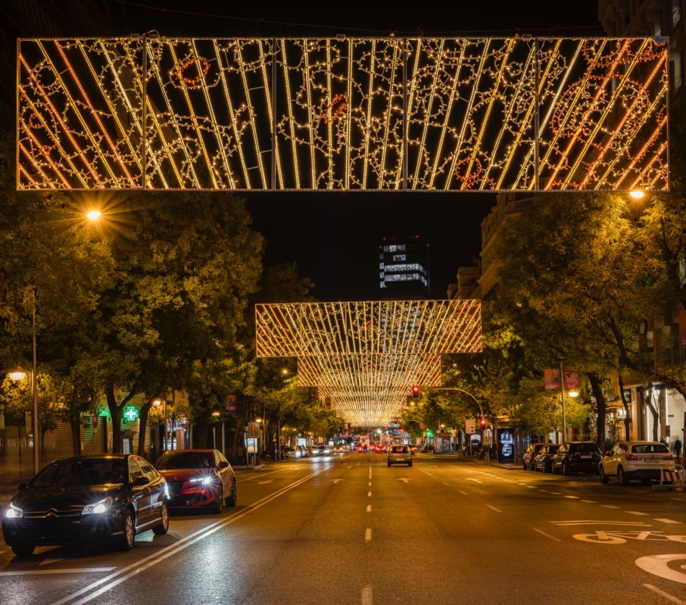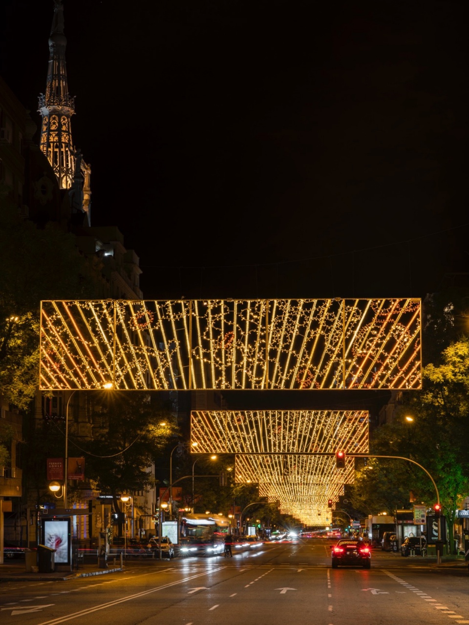 The installation consists of 25 motifs/images, each measuring 2.40 m x 10 m, which illuminate 1000 m of Calle Goya. A total of 227,600 LEDs have been installed in all the motifs. The energy consumption of the entire installation is only 4 kW/h.