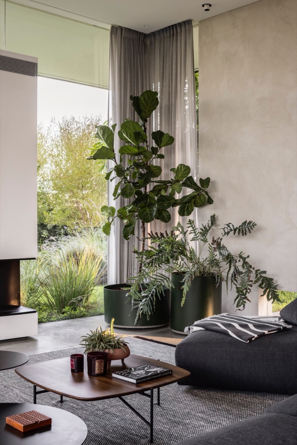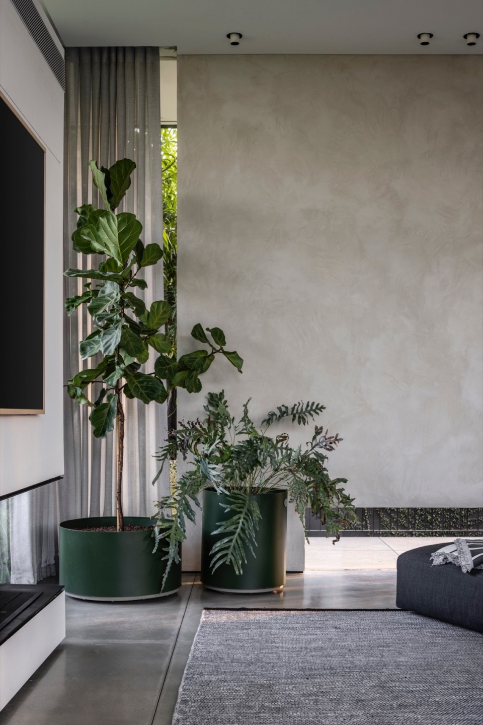 ▼绿植与柔灰色地毯,greenery and soft gray rug