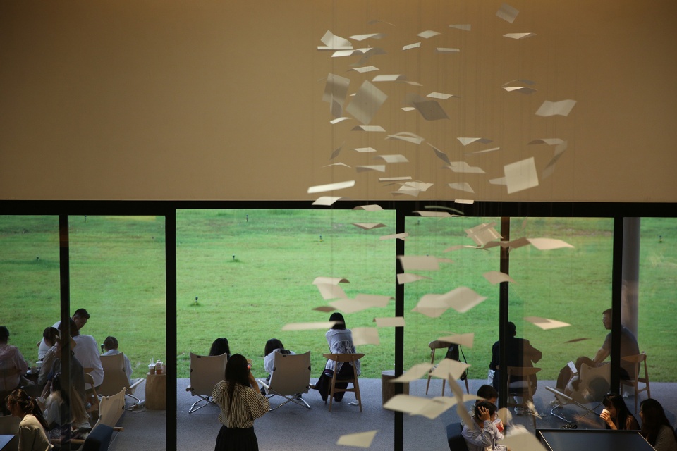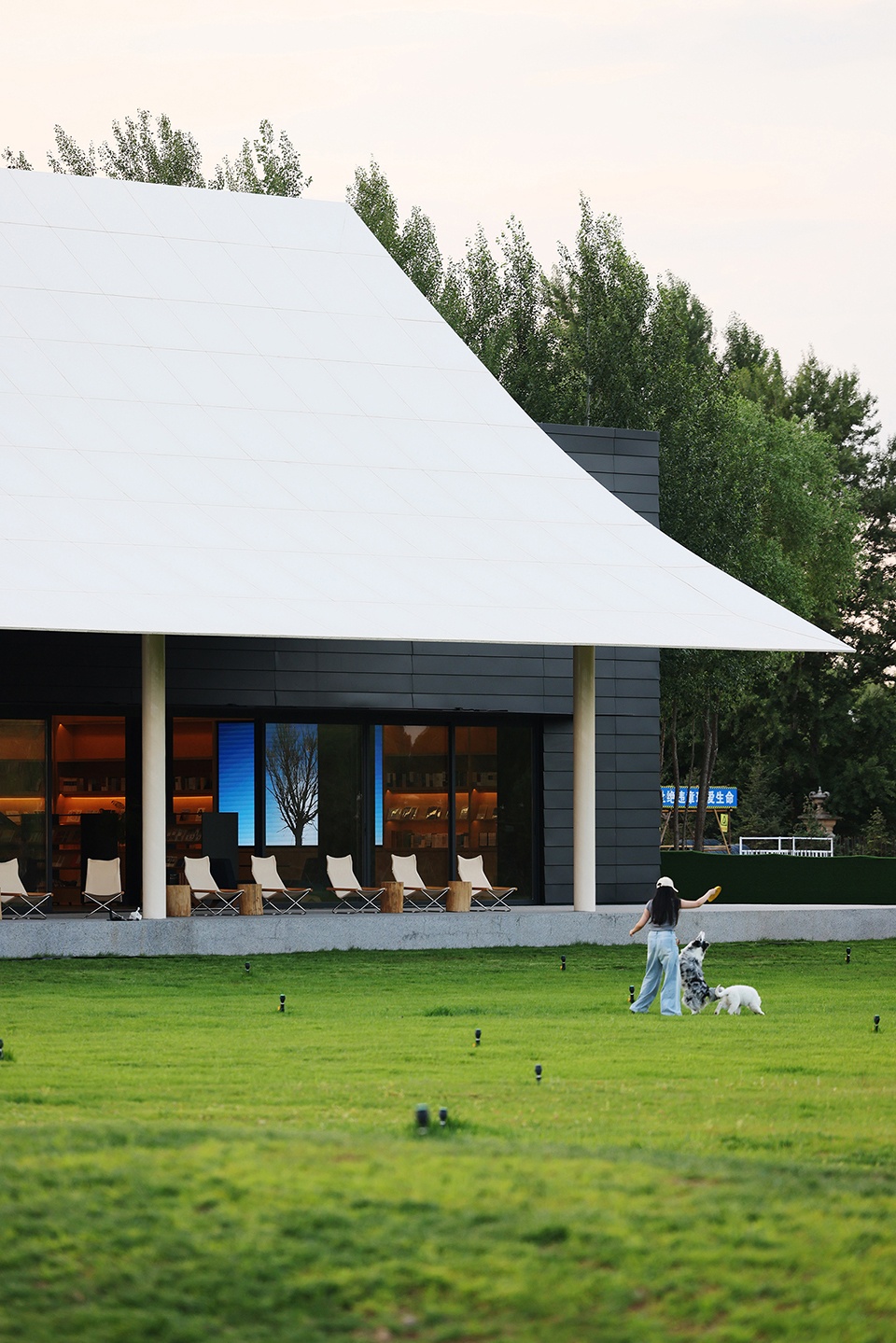 Based on the black building blocks, the concept of “tie” is further extended. On the south side of the building, above the black box, a simulated “floating white paper” is used as the eaves, gently placed on top of the main building, echoing the core concept of the bookstore. Meanwhile, the white eaves also form a space under that shields from wind, rain and sun, becoming the favorite area for guests to relax.