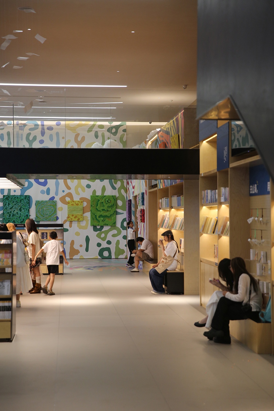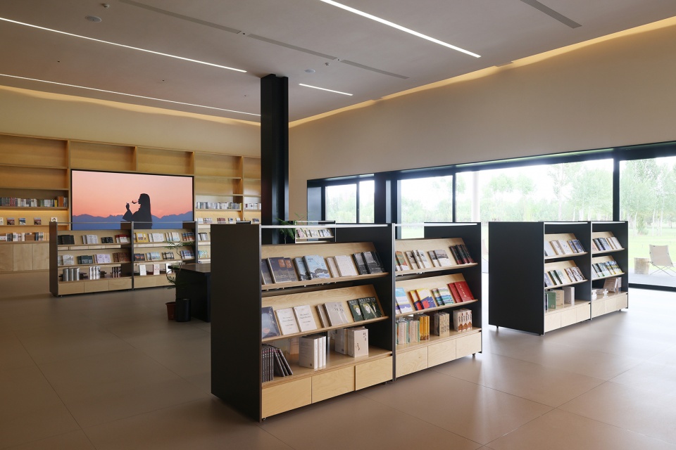 The bookstore space can be adjusted and arranged according to different activity themes. From July to October 2025, the bookstore hosted the exhibition of artist Zhao Yuya’s “Pastoral Songs of the Eight Wildernesses”. According to the exhibition requirements, move the bookshelves, display them on the walls, and hang floating papers on the top. A collision occurred between art and local culture, fashion and tradition. As a carrier of cultural activities, bookstores began to take root, sprout and grow gradually in the northern city of Ordos.