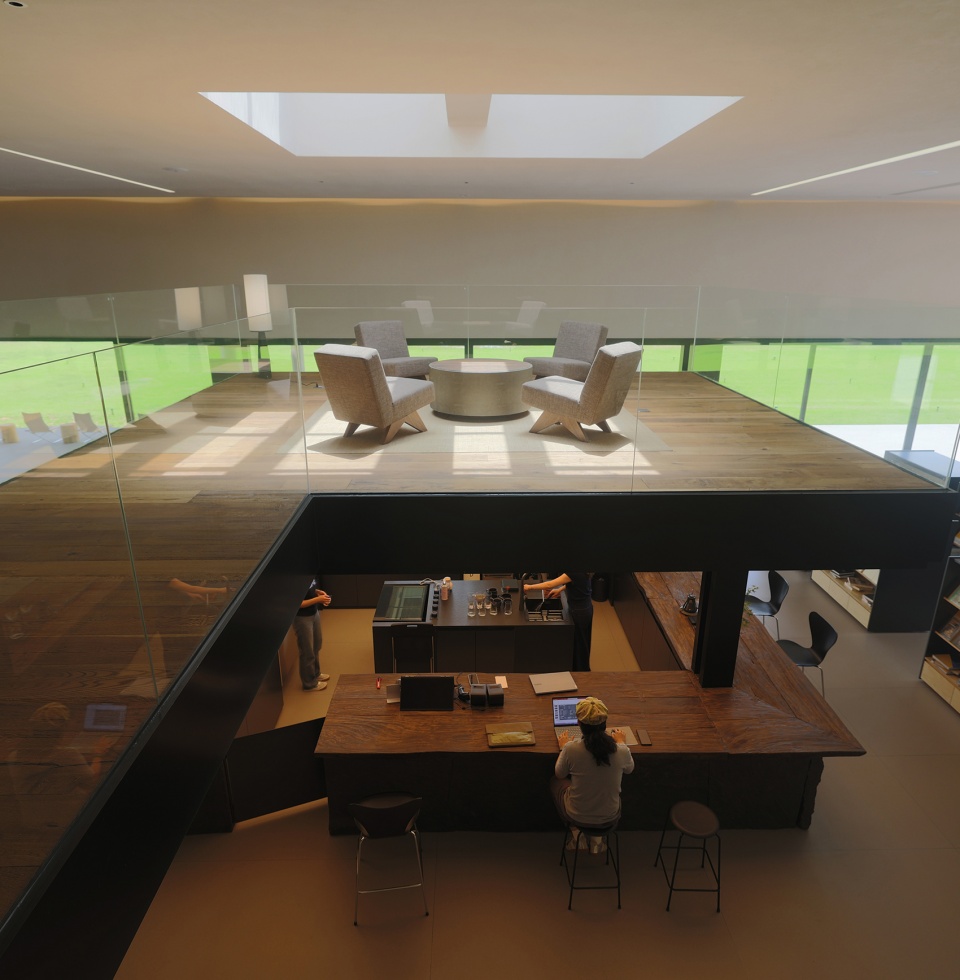 The top of the bar counter on the first floor forms an independent aerial whisky-tasting area for the second floor, becoming the most core viewing area of the entire store. The transparent glass fence offers an unobstructed view, as if floating in the air. Sunlight streams through the skylight at the top, bathing the entire body and radiating a sacred glow. Holding a classic glass, sipping whisky, looking down at the entire scene from top to bottom in the air, private, exclusive and noble.