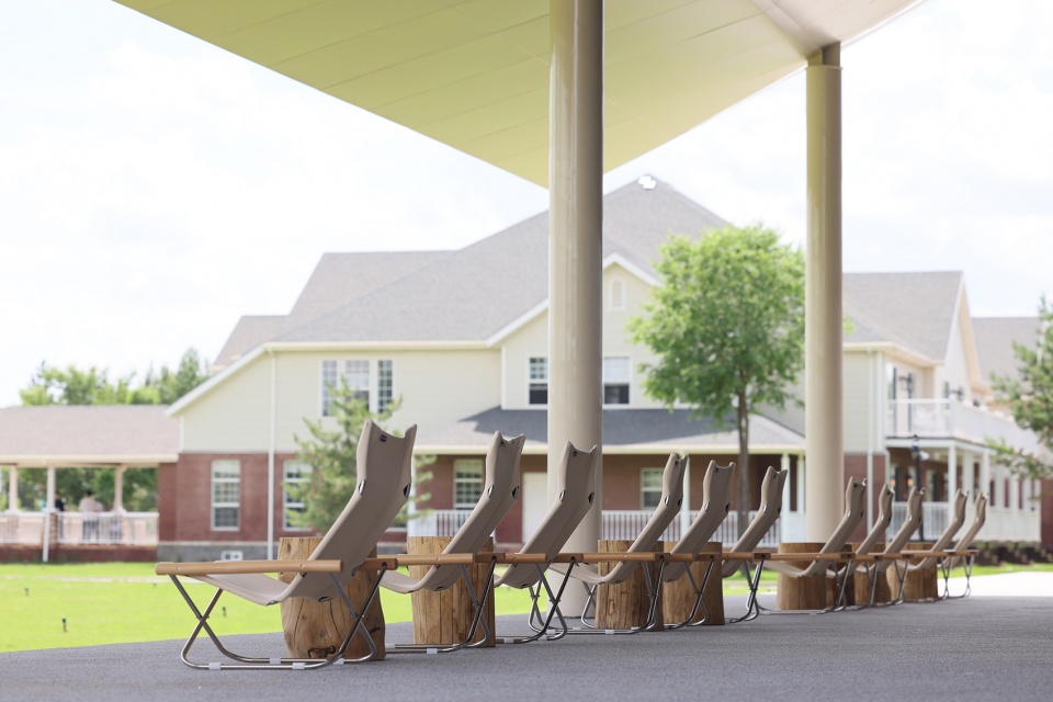 ▼ 屋檐下的座位近景,Seats under the eave close view