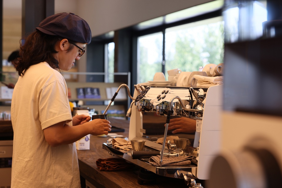 ▼ 咖啡师调制咖啡,Barista crafting coffee
