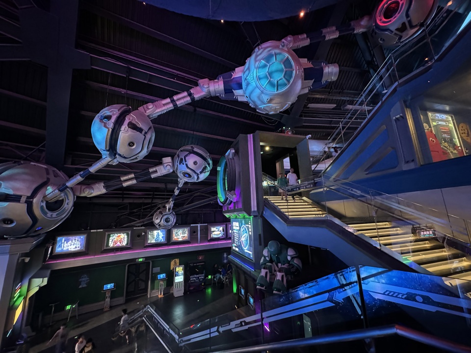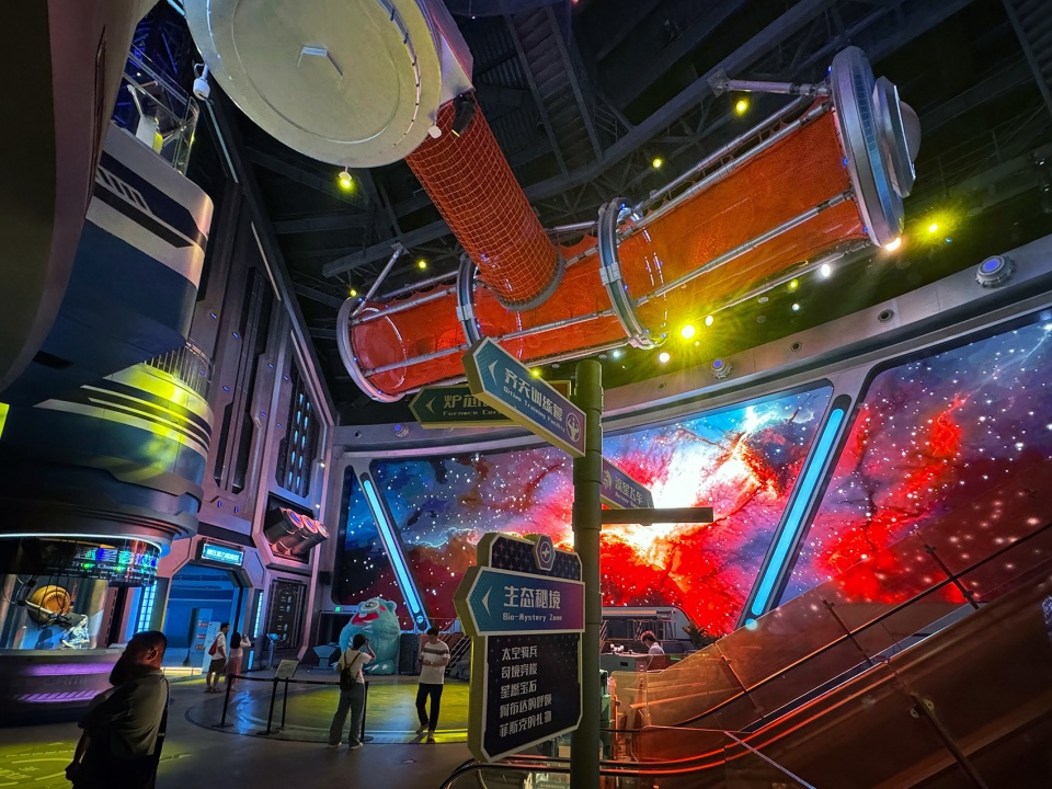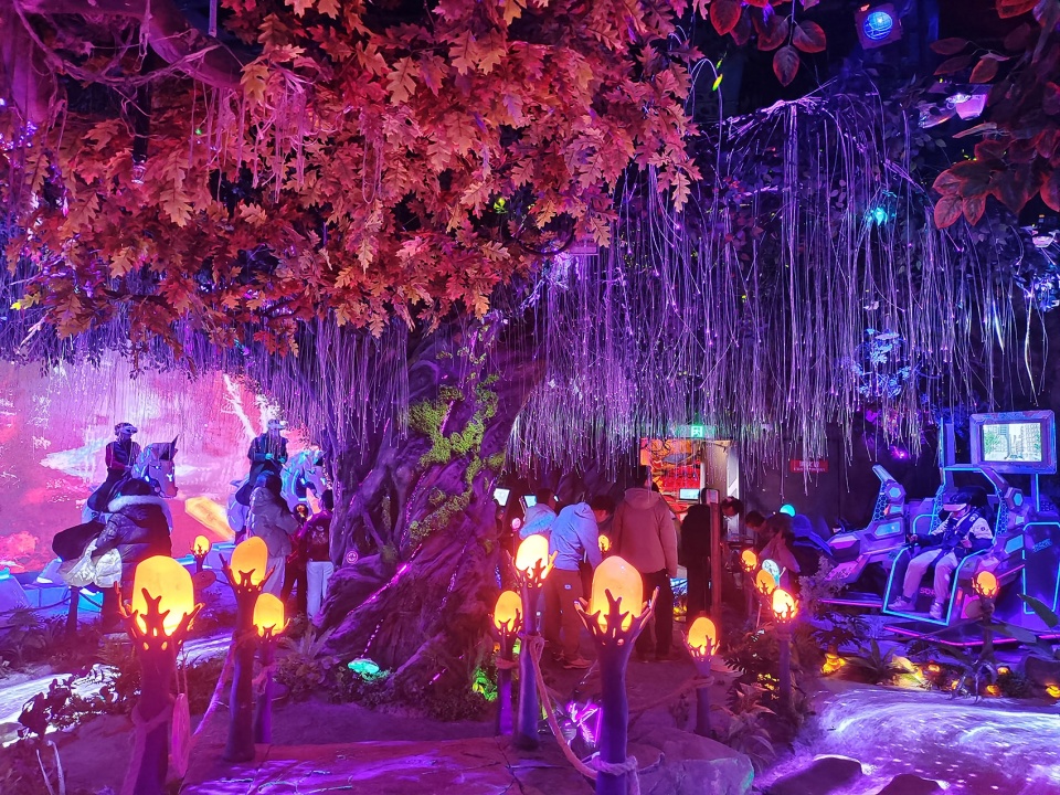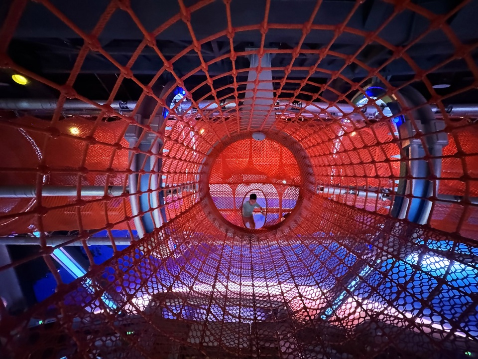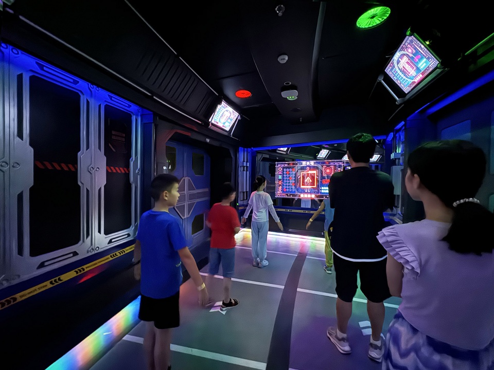 南侧为科幻乐园区,聚焦动态互动体验,二至六层垂直分布载具体验、跳楼机、无动力滑索、高空探索、攀岩救援、绳网虫洞等数十种项目,以及生态秘境、齐天号观测中心等互动科技体验区,游客可化身 “星际探险家”,在高低错落的空间中穿梭嬉戏,尖叫与欢笑交织,热闹氛围贯穿全场。