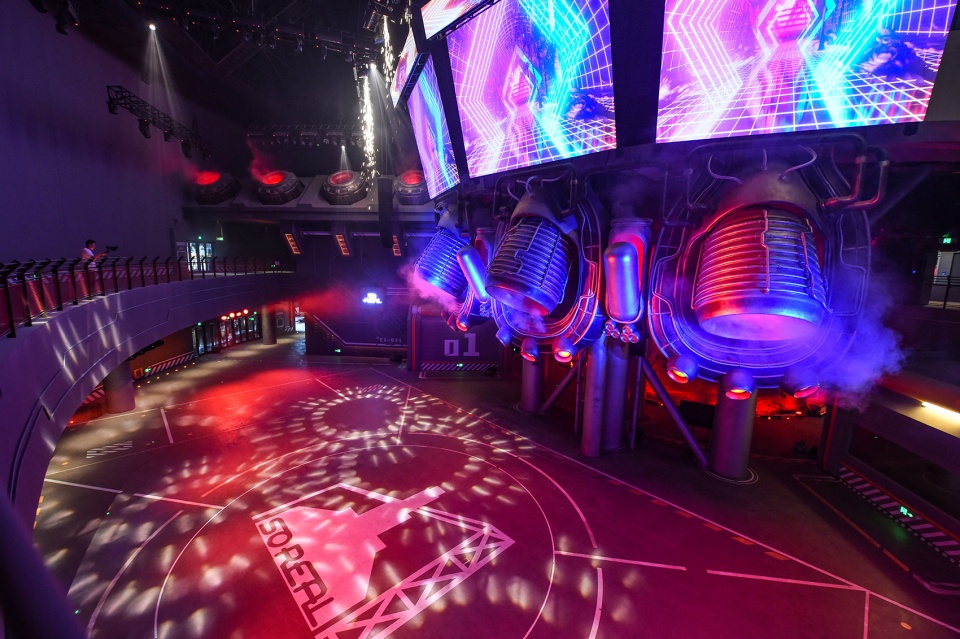 北侧为光影秀场区,包含全国最大的多人VR虚拟对战区“33 Meta Club”,赛博朋克美学与高炉钢结构形成强烈视觉张力,同时具备科幻产业顶级发布功能,中国科幻大会、京西电竞节、TGA 腾讯电竞运动会等顶级活动均在此举办,成为国内顶配沉浸式科幻体验空间。