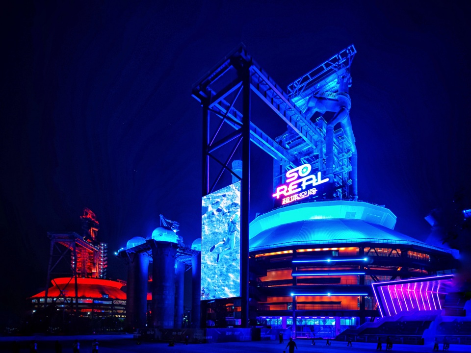 Shougang No.1 Blast Furnace is located in the North District of Shougang Park, Beijing. It stands east of Qunming Lake Avenue, southwest of Jin’an Sci-Fan, with No.3 Blast Furnace to the west, No.2 Blast Furnace to the east, and directly facing the central green axis landscape belt of the park to the south. As a core exhibition node in Shougang’s industrial heritage array, this 104.4-meter-tall steel structure with an 80-meter breast diameter was first built in 1919. It witnessed the establishment and prosperity of Shougang Steel Plant, and was decommissioned in 2010 after multiple renovations and upgrades. Since 2019, the transformation of a blast furnace has taken “technology empowering industrial heritage” as the core idea, implanted cutting-edge technologies such as VR, AR, 5G, and holographic images, integrated into new consumer formats such as immersive theaters, e-sports, and digital exhibitions, and transformed it into the “Shougang No.1 Blast Furnace·SoReal Sci-Fi Paradise” that integrates culture, technology, and entertainment, injecting new vitality into Shougang Park and even the western Beijing area.