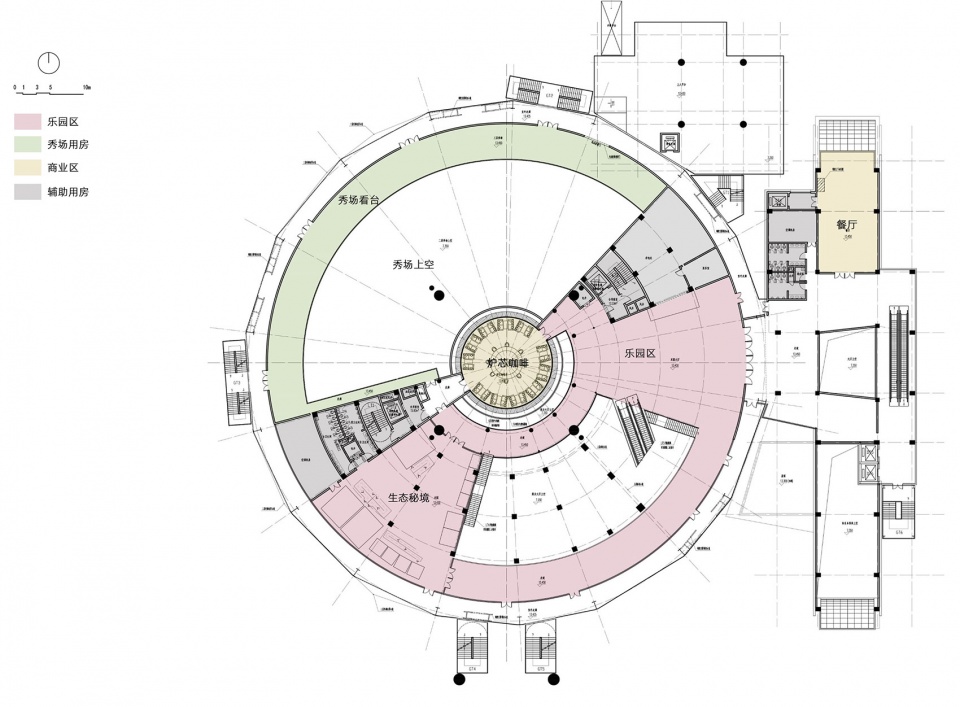 空间梳理重构:打开炉芯、增设楼层,将原炼铁工艺大空间转化为适配娱乐休闲功能的高密度垂直空间,既保留工业肌理,又满足现代体验需求;