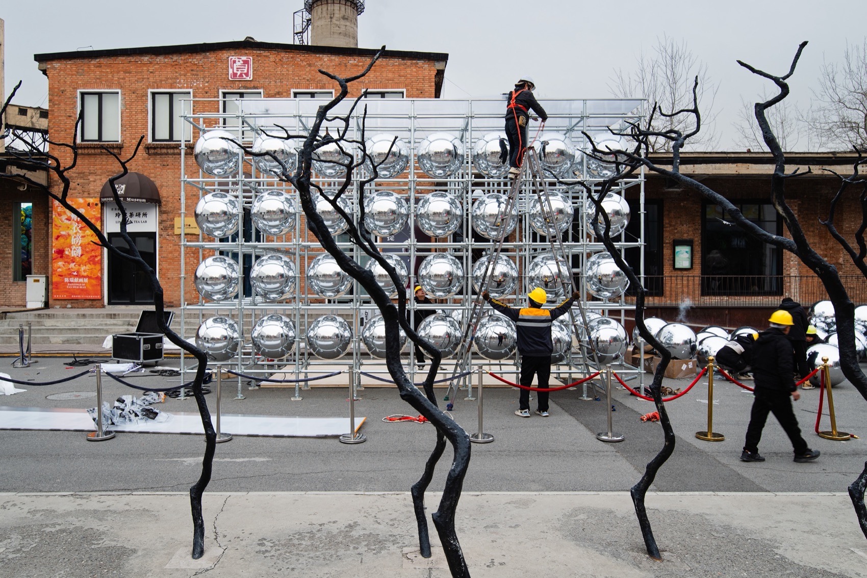 ▼搭建中的云朵装置,Cloud Installation under Construction