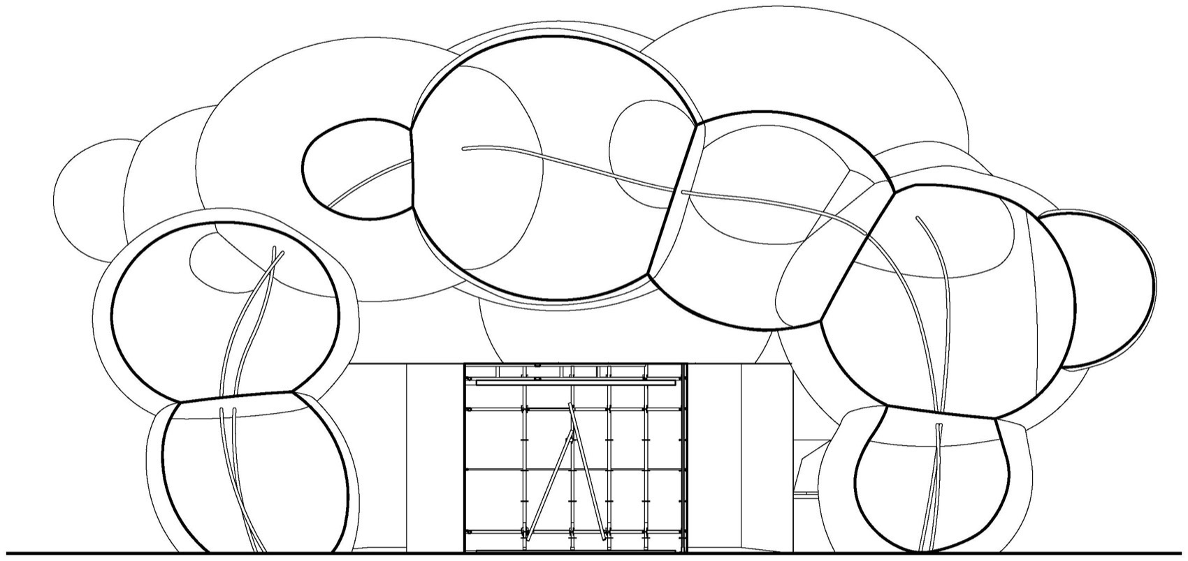 ▼街道看向气模装置,View of the Pneumatic Installation from the Street