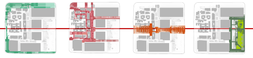 ▼ 通过时间轴线,将历史文保、商业办公、绿地空间串联起来,