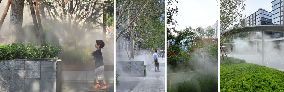 项目以主动式降温系统叠加林下绿荫、树冠遮蔽与雾森协同,削弱夏季热岛、优化热环境,显著提升气候适宜性与热舒适度。公共空间由“可达”升级为“可久留”,为市民提供更健康、宜人的户外场景,重塑人本尺度的城市体验。