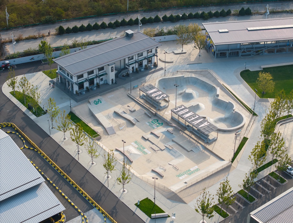 Rooted in the concept of “vitality, imagination, belonging, and community,” the design weaves street culture into the landscape, creating an atmosphere that inspires skaters and captivates visitors alike. Beyond professional skateboarding facilities, it incorporates inclusive leisure areas, green spaces, indoor skate areas, a dance studio, dining, retail, and a neighborhood park, cultivating a vibrant, symbiotic community.
