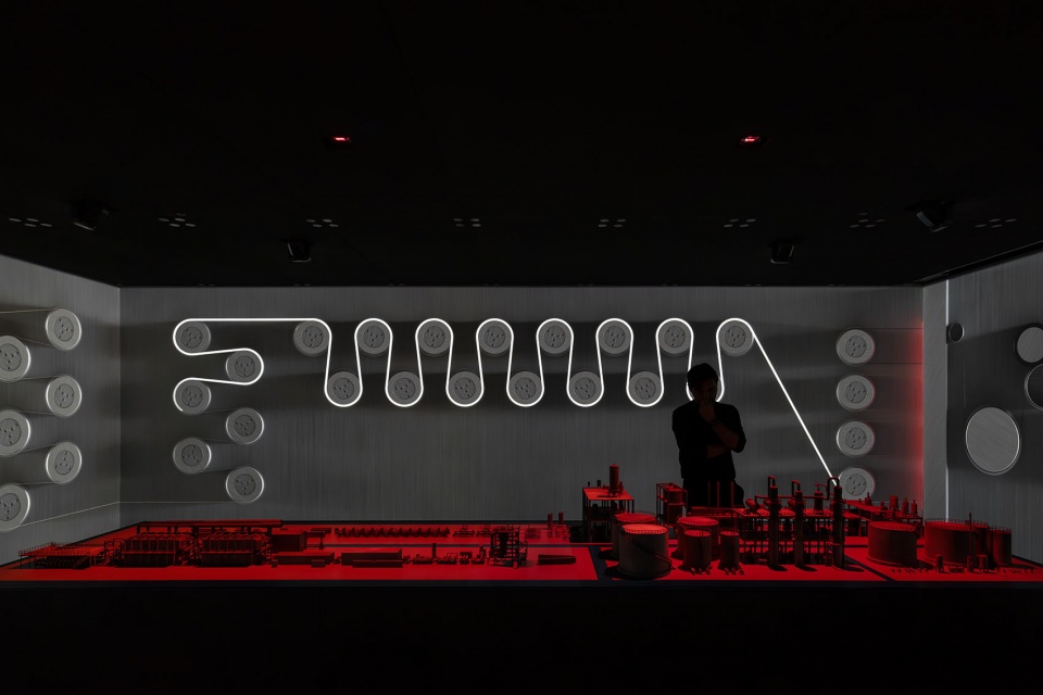 参观从 MAE 的档案馆开始,这里收藏着全球最具价值的丙烯酸纤维生产相关知识产权。丙烯酸纤维正是碳纤维的前驱材料:在精确控制的加热与氧化过程中,其碳原子会排列成超强晶格结构,从而赋予材料卓越的强度重量比。在博物馆中,由档案箱构成的“档案景观”形成一个结合数字叠加的互动三维矩阵,使观众与研究人员能够深入探索 MAE 独一无二的工业创新与知识产权宝库。档案由此成为一座活态博物馆——一个可阅读、可探询、可激发思想连接的场所。