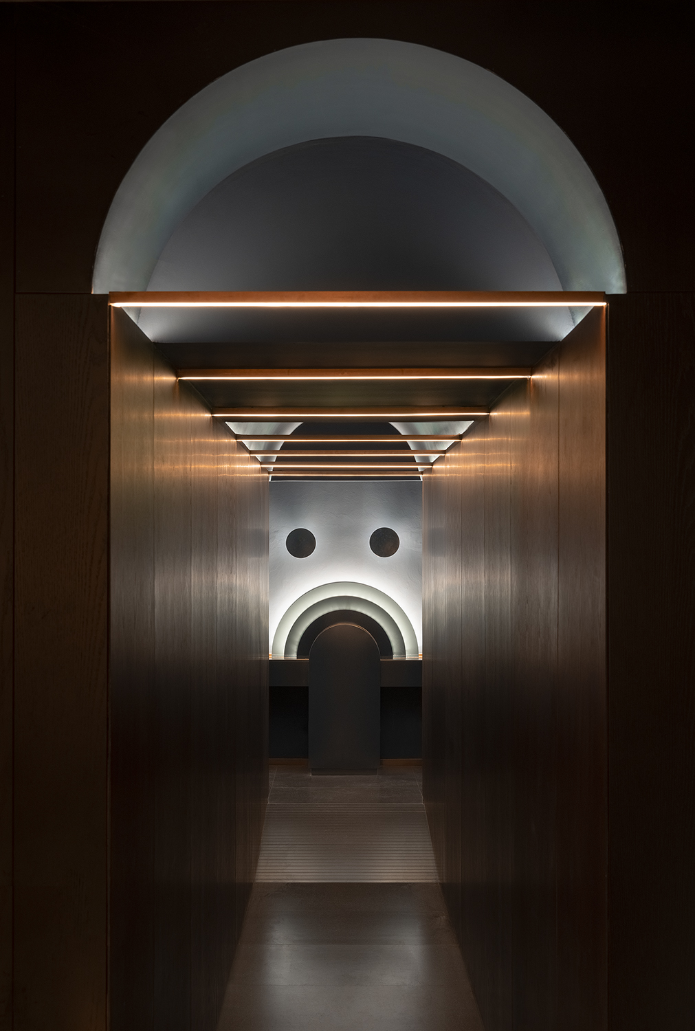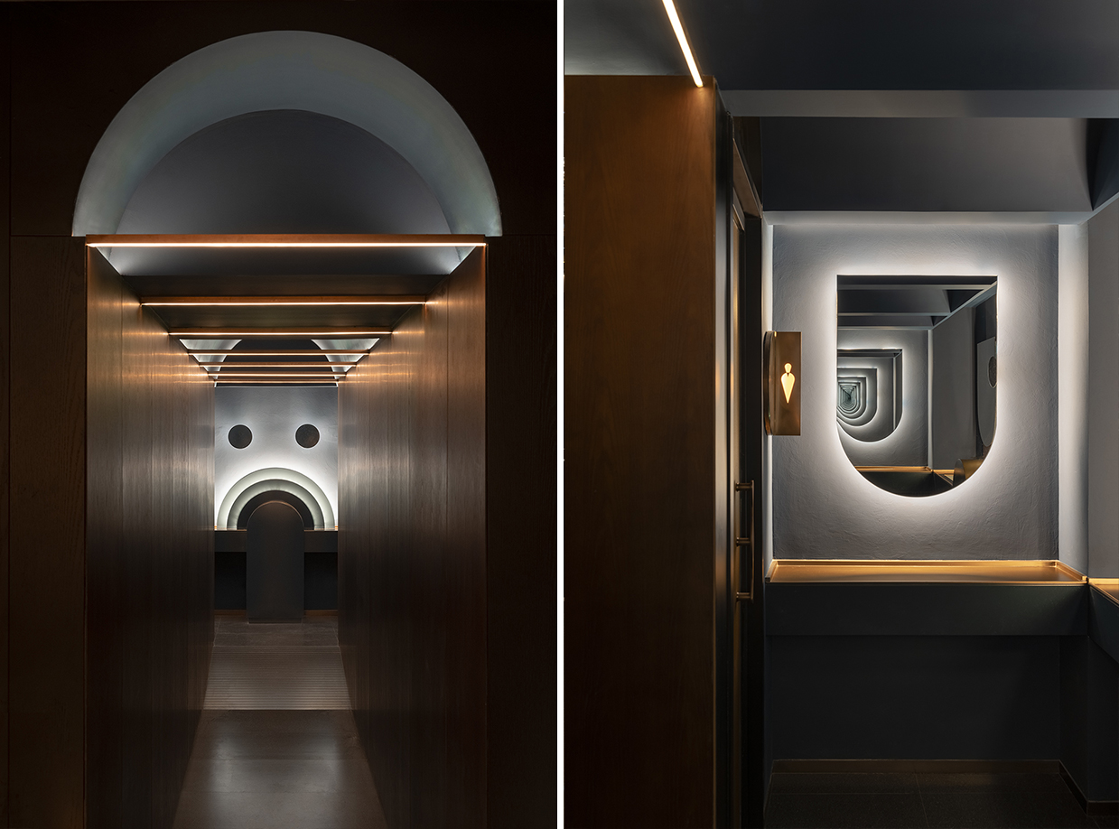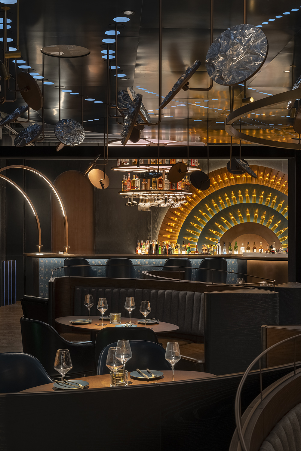 邻近主入口的酒水吧台区,是调酒师的主场,也是设计上对于时空流转的表现之处。