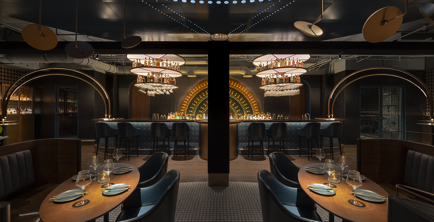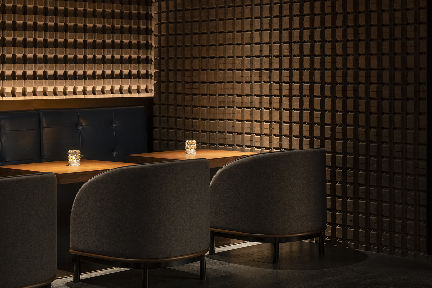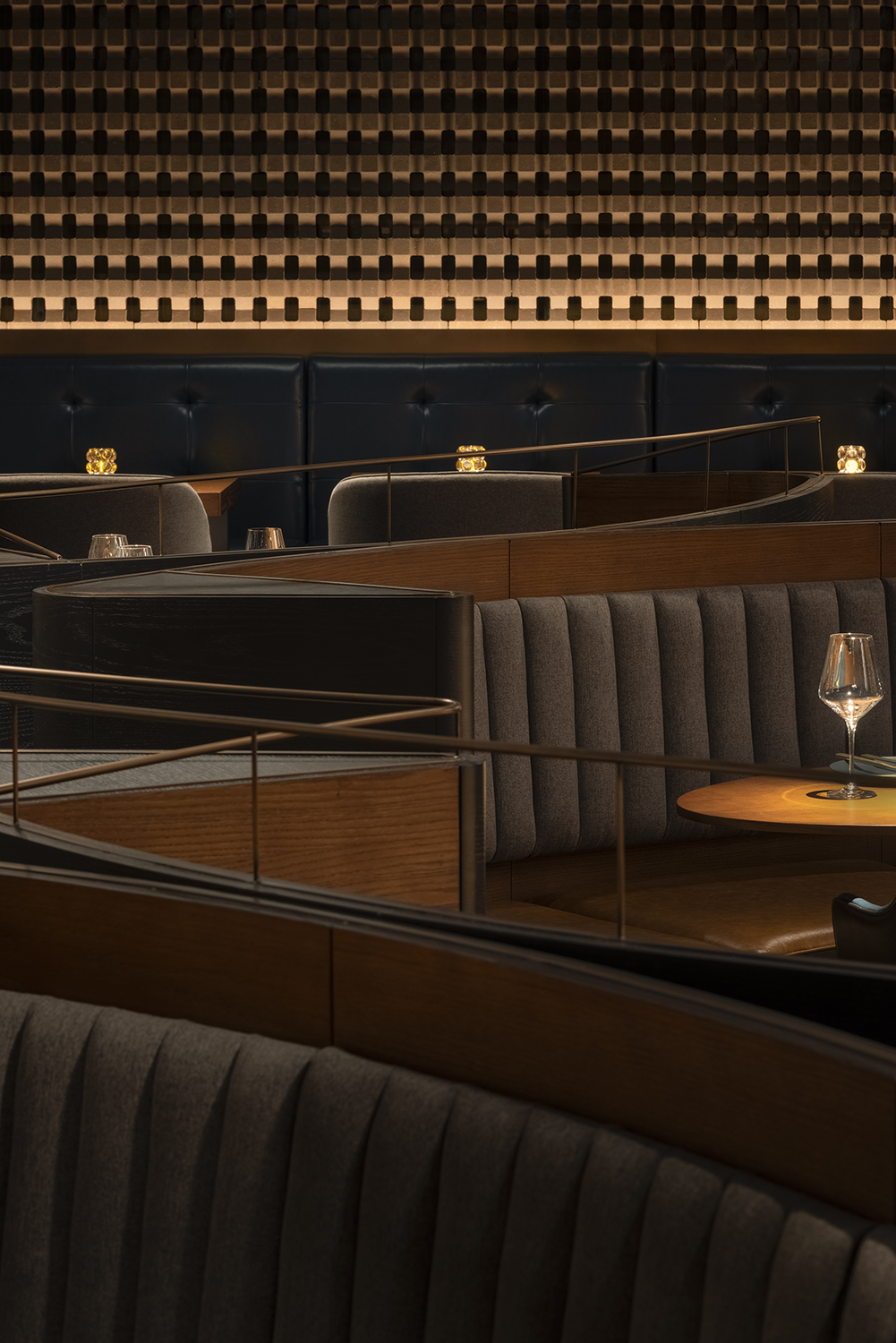 邻近主入口的酒水吧台区,是调酒师的主场,也是设计上对于时空流转的表现之处。
