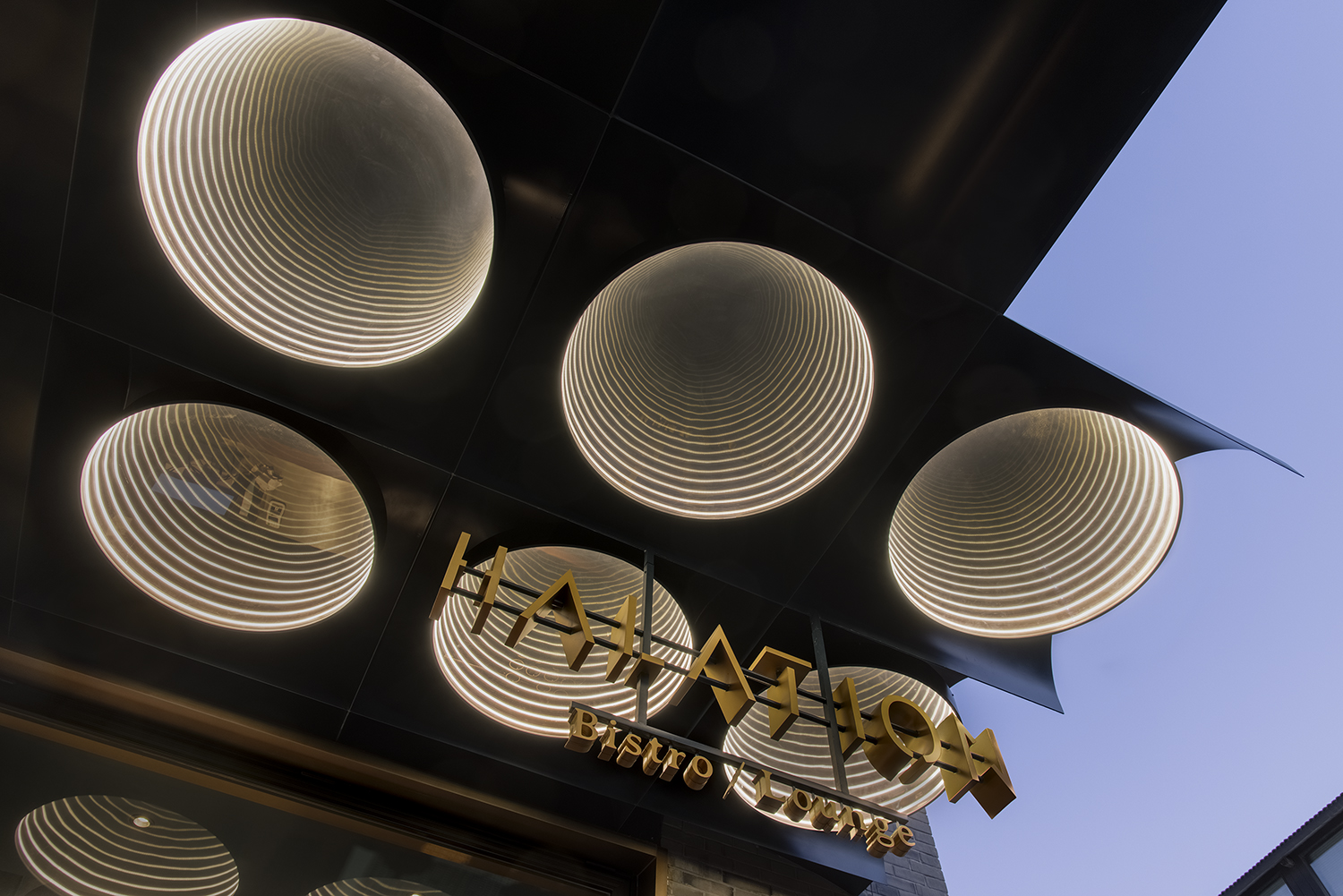 With the concept of astronomical environment, ' Halation' uses different lighting Installations and BlueTooth to control the lighting effect of the whole site. Therefore, the various dining times reflect the diverse interest and appropriate lighting atmosphere.