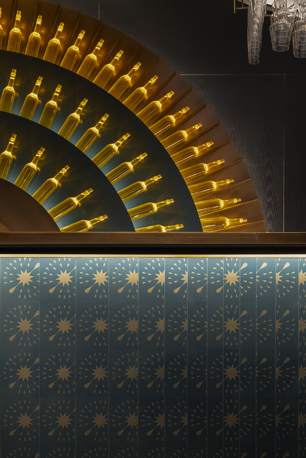 The wine bar area adjacent to the main entrance is the stage of the bartenders, and it is also the place where the design expresses the flow of time area.
