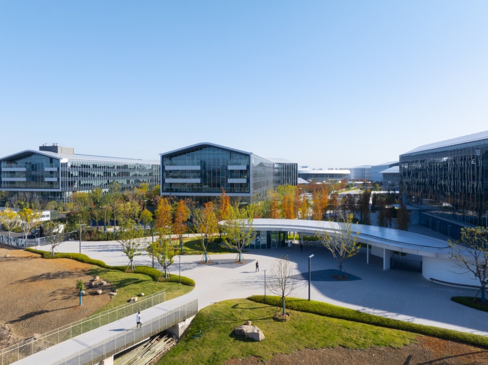 The project covers a total area of 22.8 hectares, with a landscape area of 15.7 hectares. The leaf-vein-inspired spatial structure creates a figure-ground topological relationship between the architecture and the landscape, providing optimal visual connections for the buildings and inherent advantages for the integration of internal and external landscapes. Multiple design strategies, including view corridor control, habitat creation, and slow mobility system connections, link the internal landscape of the park with the external ecological corridor, allowing the site to organically grow together with the surrounding mountains and lakes.